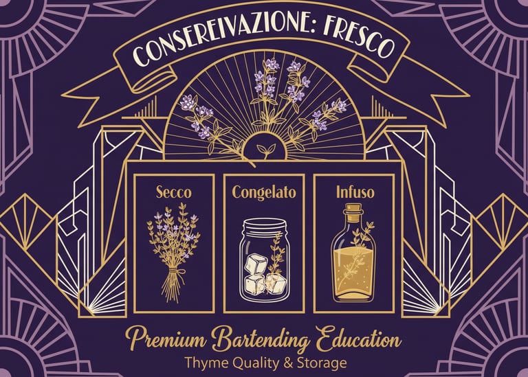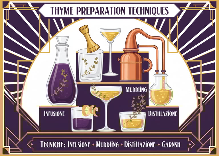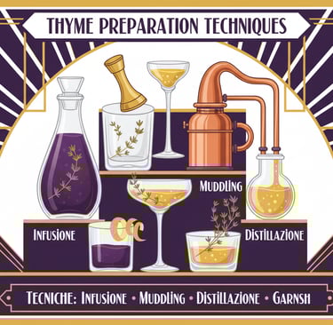 Un rametto di timo fresco può essere battuto tra le mani o leggermente affumicato per intensificare il profumo. È una tecnica semplice ma molto efficace nei drink serviti up o in tumbler.