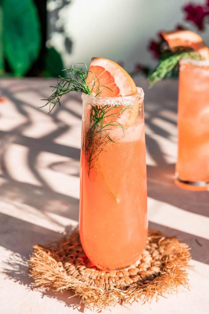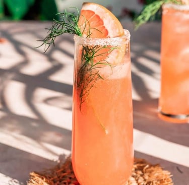 Garnish: Una fetta di pompelmo rosa o un twist di lime aggiungono freschezza e colore.